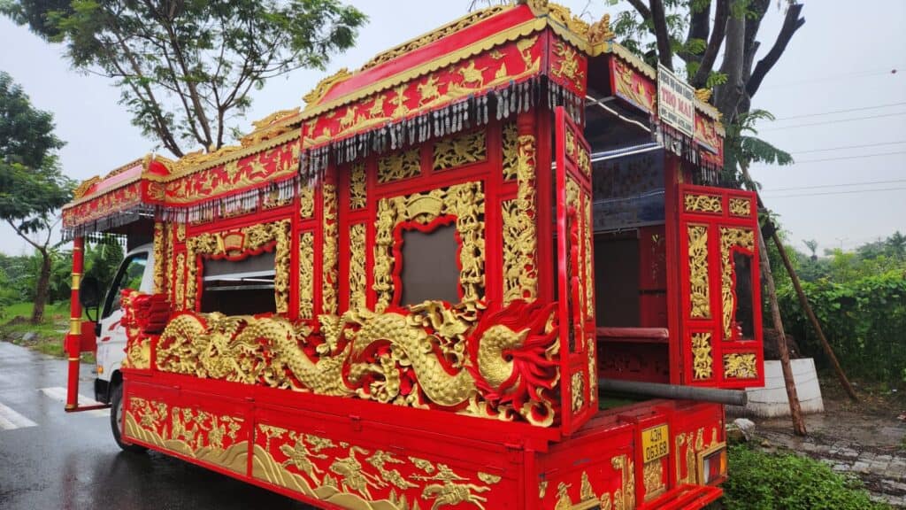 We passed buffalo, waving kids, and a local selling his day’s work a perfectly chopped-up pig laid out roadside. True paddock to plate. Then, just when I thought we’d seen it all, we met a local hearse driver and undertaker. Not exactly your usual tourist stop, but it definitely added a whole new layer to authentic experience.